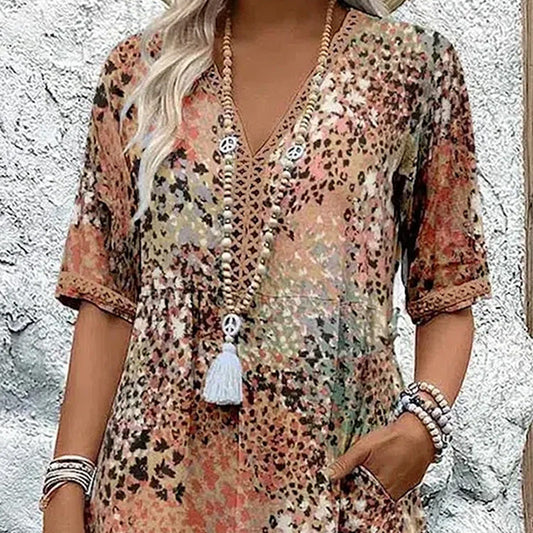 Tryckt mittikjol med V-ringning för damer🌿(Klassisk och elegant)